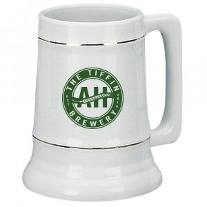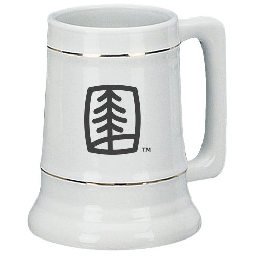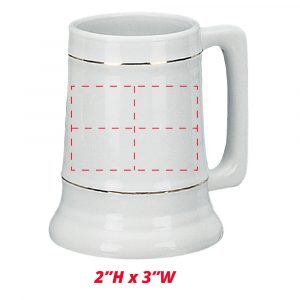 7198-02G | 28 Ounce Ceramic White Stein with Gold Bands/Platinum Bands