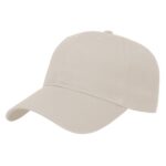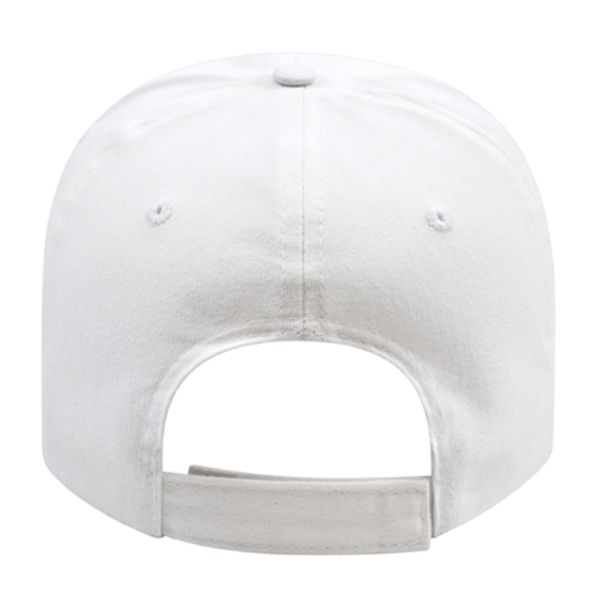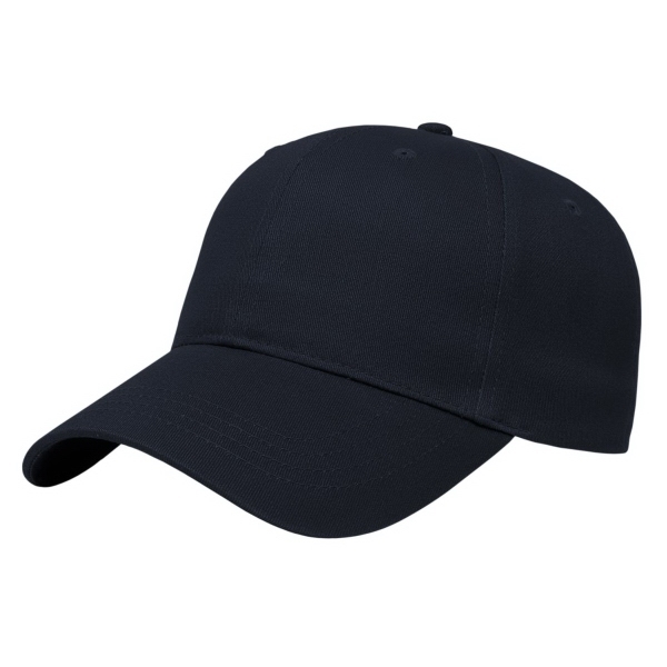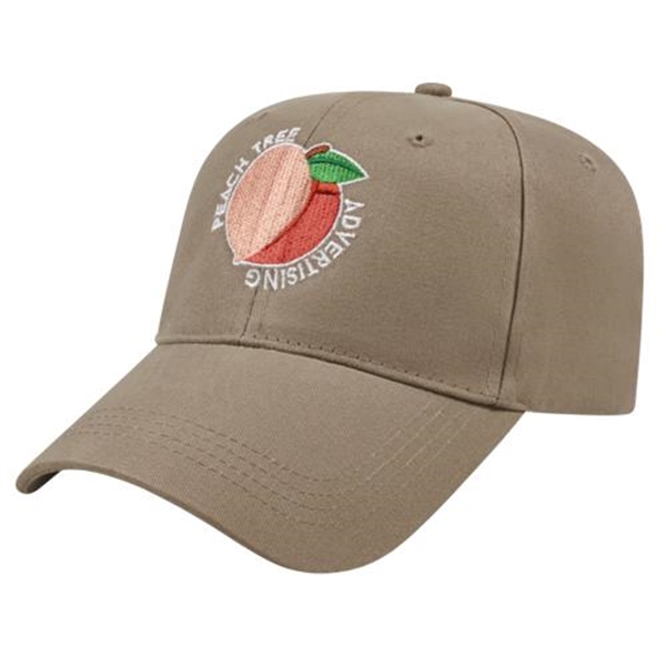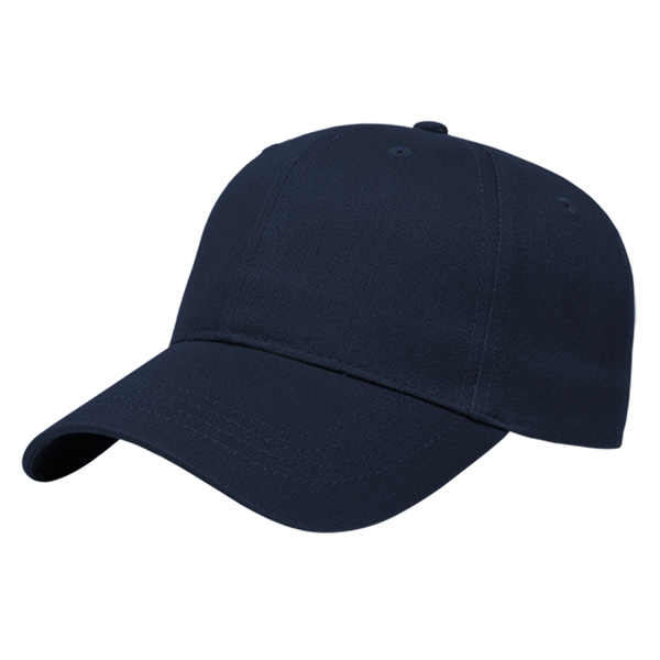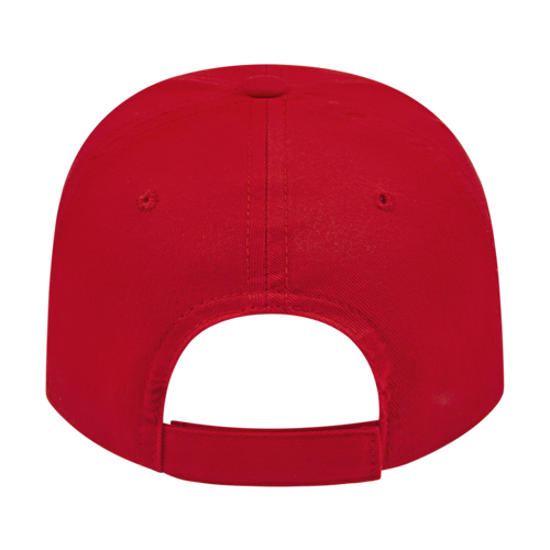Low profile structured six panel cap is made of brushed cotton twill with a two-piece hook and loop closure that adjusts to fit most people