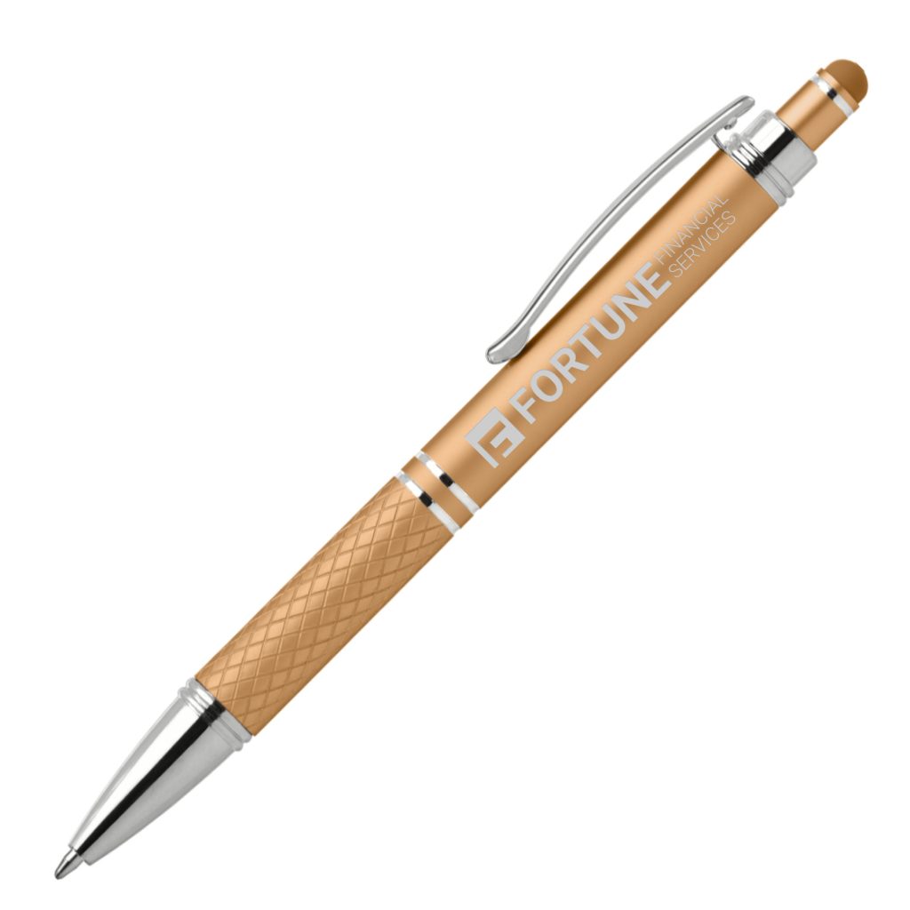 Polished chrome accents, trim and clip create a sophisticated look.  Customize with your BRAND using our precise laser engraving in silver.