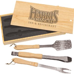 BBQ01A – 20″ x 9.625″ Laser Etched Box w/3 Piece BBQ Set Included